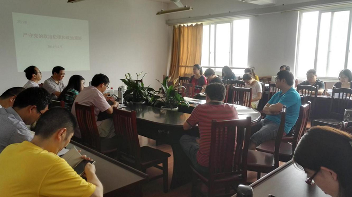 6月22日下午,按照学院党总支“两学一做”学习教育的安排,党总支书记高菊生给学院全体党员上了一次题为《严守党的政治纪律和政治规矩》的党课。