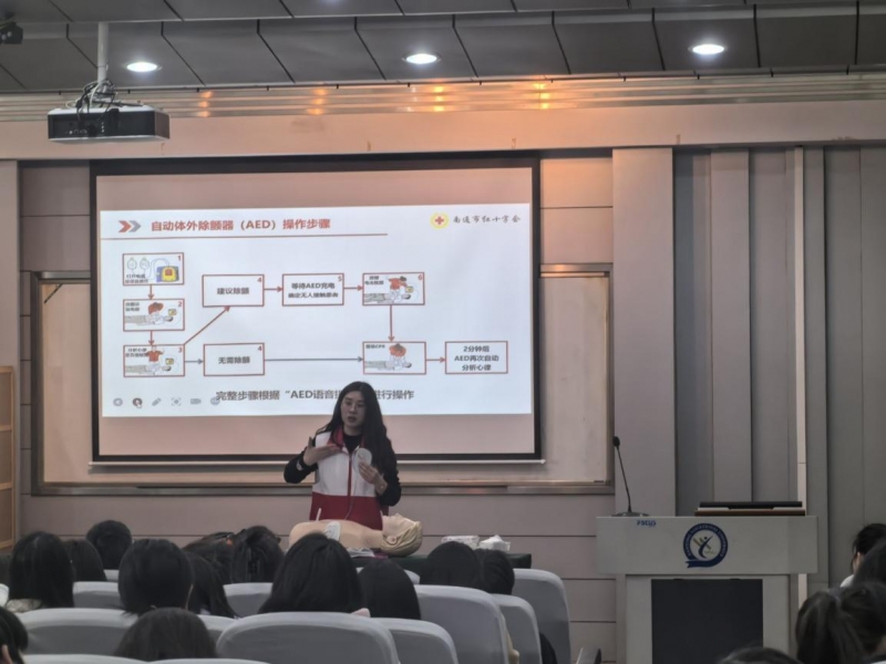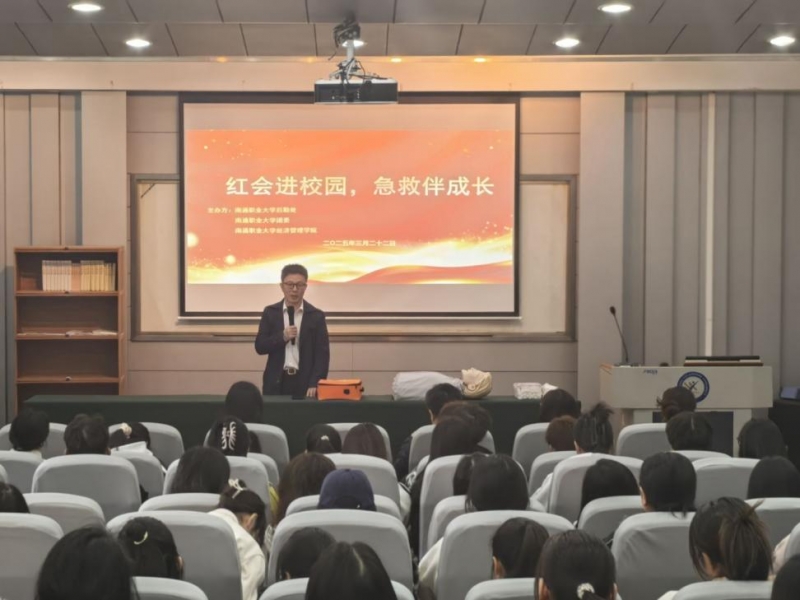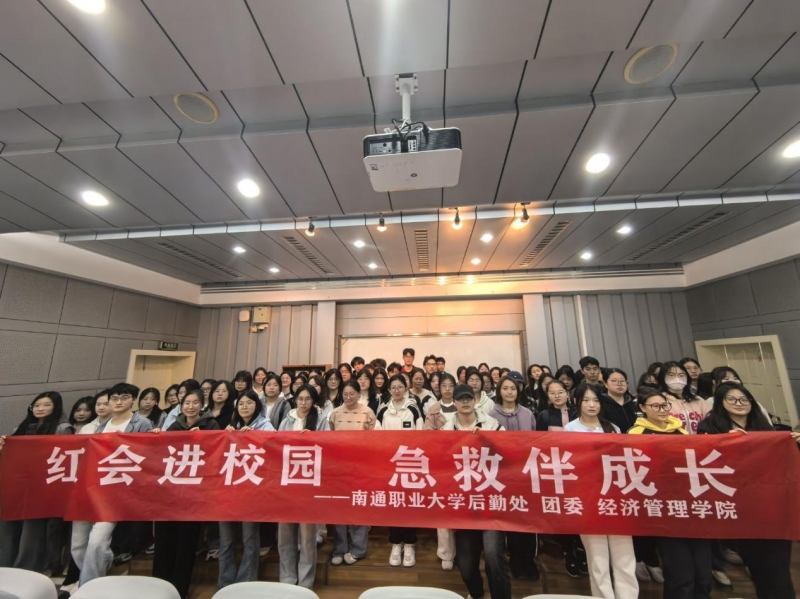 3月22日,南通职业大学校园内红十字标志格外醒目,由后勤处、团委、经济管理学院联合南通市红十字会共同举办的"红会进校园,急救伴成长"主题教育活动在党校报告厅圆满举行。后勤处处长卢勤恩、团委书记朱艾琪、经济管理学院党总支书记吴明圣、教师代表刘玲出席活动,与红十字会专业讲师团队共同为130名经管学子带来了一场生命教育必修课。