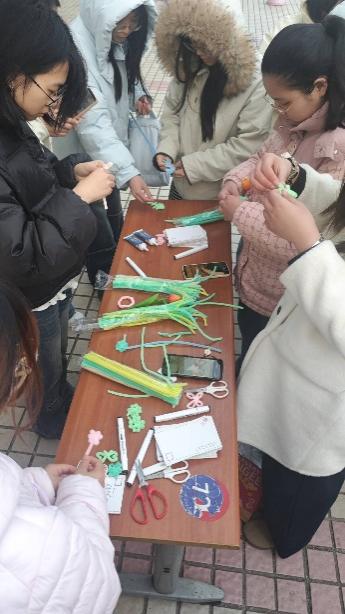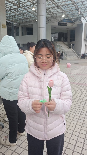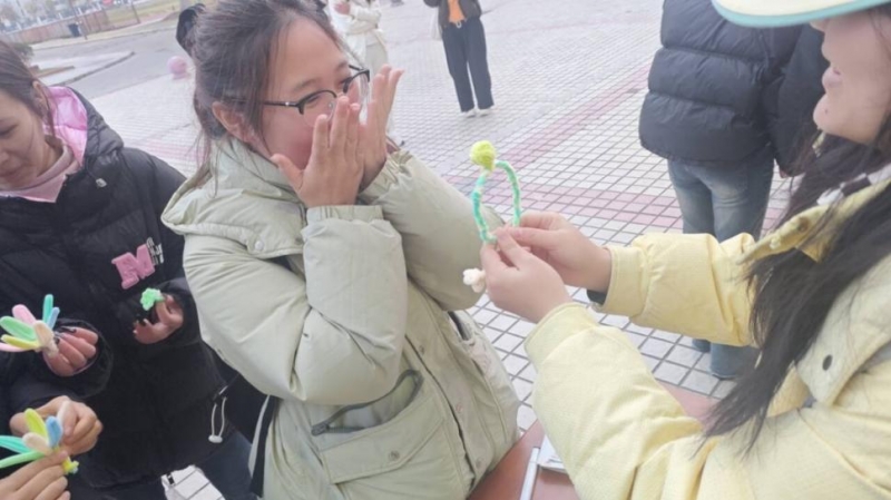 另一边的扭扭棒创意手工区,彩色扭扭棒在同学们的指尖翻转、弯折,柔软的材料、自由的创作形式,隐喻着女性生命的无限可能——她们可以是任何模样,无需被框架束缚,自带独特光芒。大家沉浸在手工创作的乐趣中,将对生活的热爱、对美好的期许,融入每一件亲手制作的作品里。不少同学将精致的手作送给身边的女性老师、同学,以小巧的礼物传递节日祝福,让情谊在指尖流淌,让温暖在校园里蔓延。